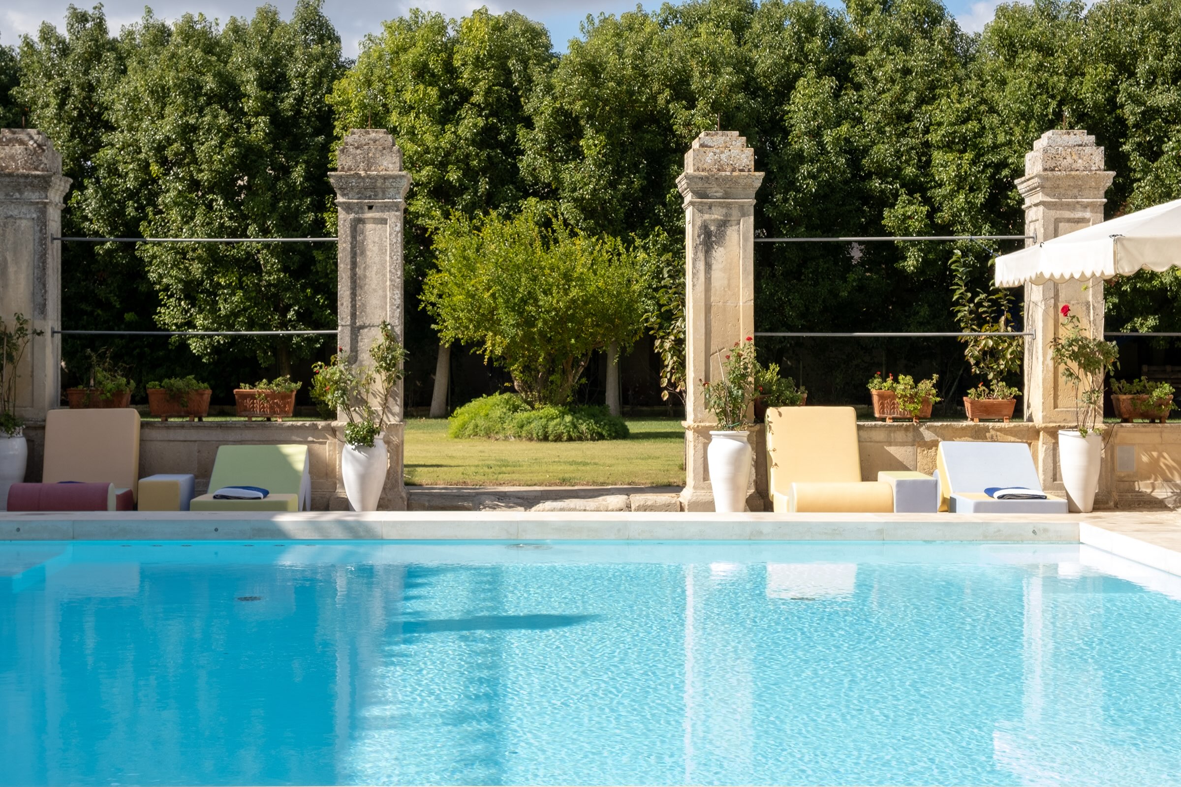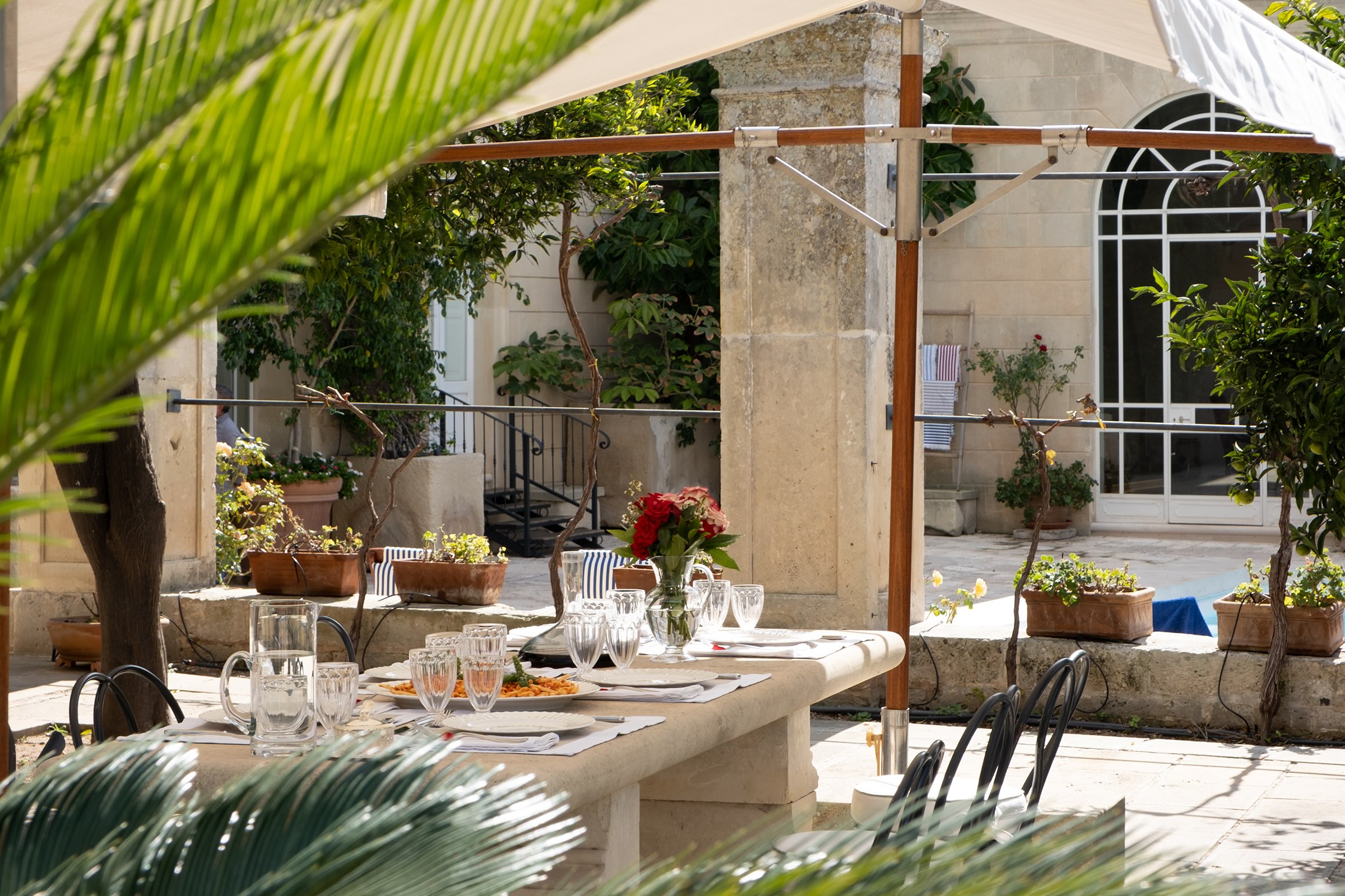 Intimacy, history and elegance for timeless weddings and events. Within its frescoed halls, vaulted salons and quiet internal courtyards, Palazzo Bernardini de Pace becomes the stage where every event turns into an unforgettable memory. Authentic and refined indoor and outdoor spaces welcome intimate weddings, exclusive ceremonies and private gatherings immersed in the charm of a historic Salento residence. The noble halls, the ancient loggia, the inner courtyard and the panoramic terraces offer evocative settings shaped by Renaissance architecture, Mediterranean light and centuries of heritage. In the outdoor areas, among citrus trees, stone paths and secluded corners of the garden, the atmosphere is warm and sophisticated. Dedicated areas for receptions and private dinners elevate each moment with elegance. At Palazzo Bernardini de Pace, every event is an invitation to celebrate beauty, heritage and togetherness.