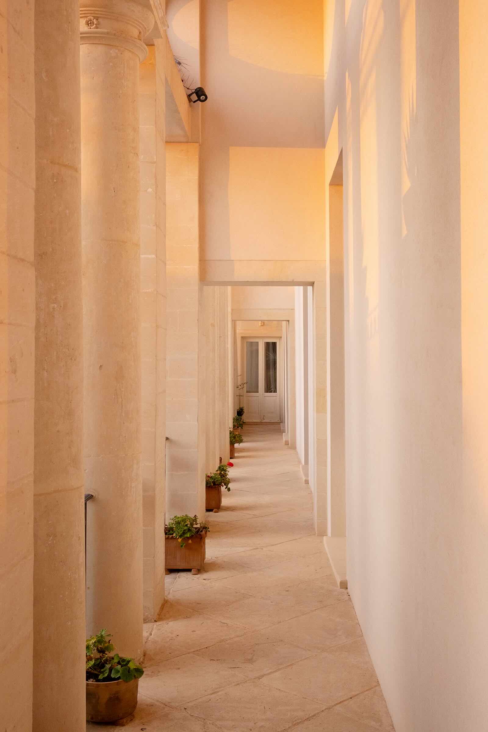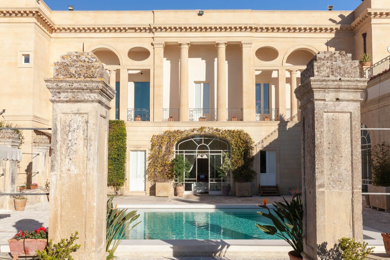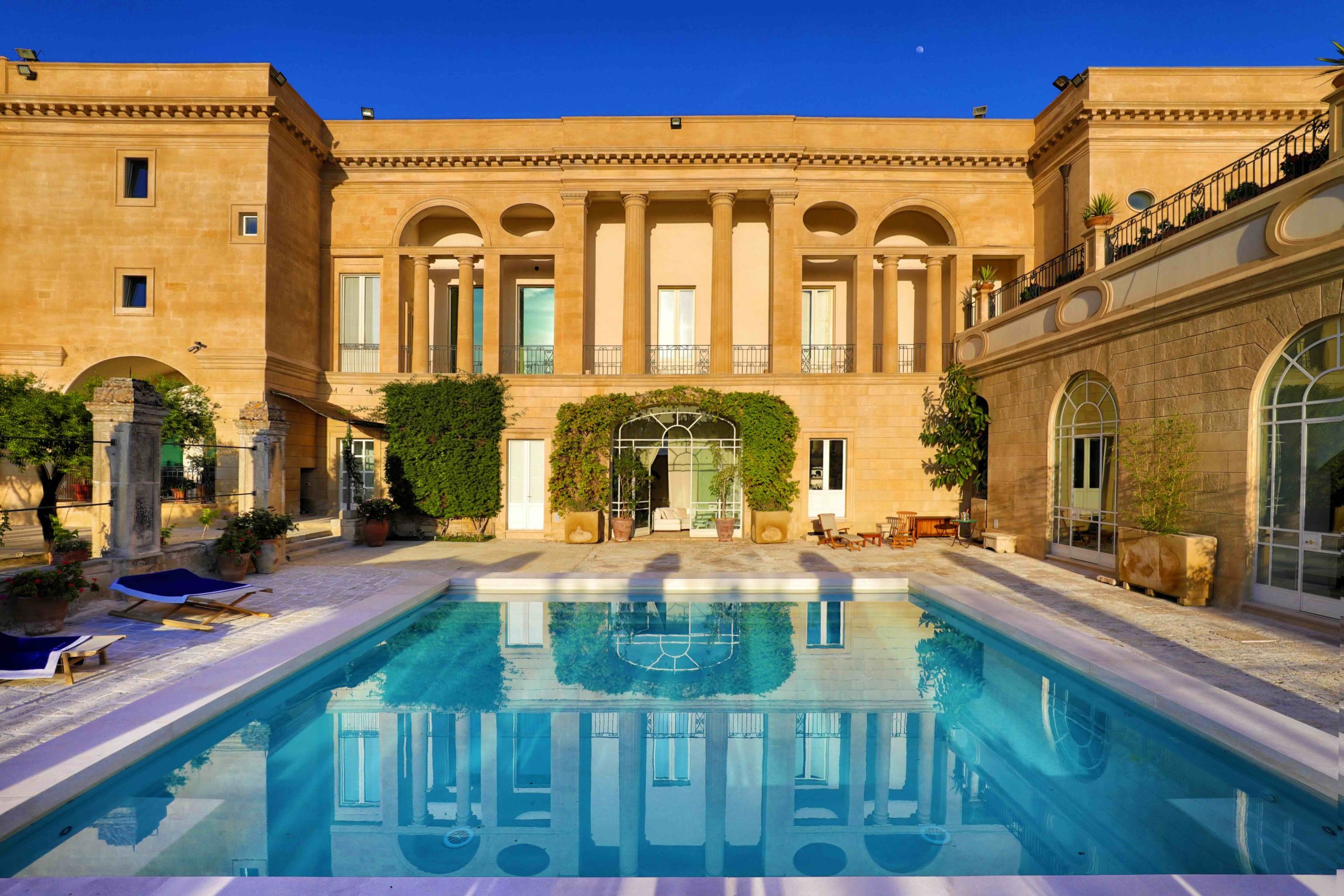 Nel cuore del Salento, Palazzo Bernardini de Pace è un’antica dimora aristocratica dove l’eredità storica incontra il comfort moderno in un equilibrio perfetto. Spazi monumentali, affreschi, marmi e una collezione eclettica di opere d’arte raccontano secoli di storia, mentre la cura del dettaglio e la presenza discreta dello staff creano un’esperienza di ospitalità autenticamente italiana. Distribuito su più piani e due ali, il palazzo accoglie gli ospiti in ambienti generosi e luminosi: saloni affrescati, sale da pranzo scenografiche, terrazze panoramiche, living rooms con camini monumentali e una cucina professionale pensata per cene conviviali e momenti speciali. Le sei suite — tutte diverse per stile e atmosfera — combinano volumi imponenti, elementi d’epoca e comfort contemporanei, molte con terrazze private affacciate sui giardini interni.